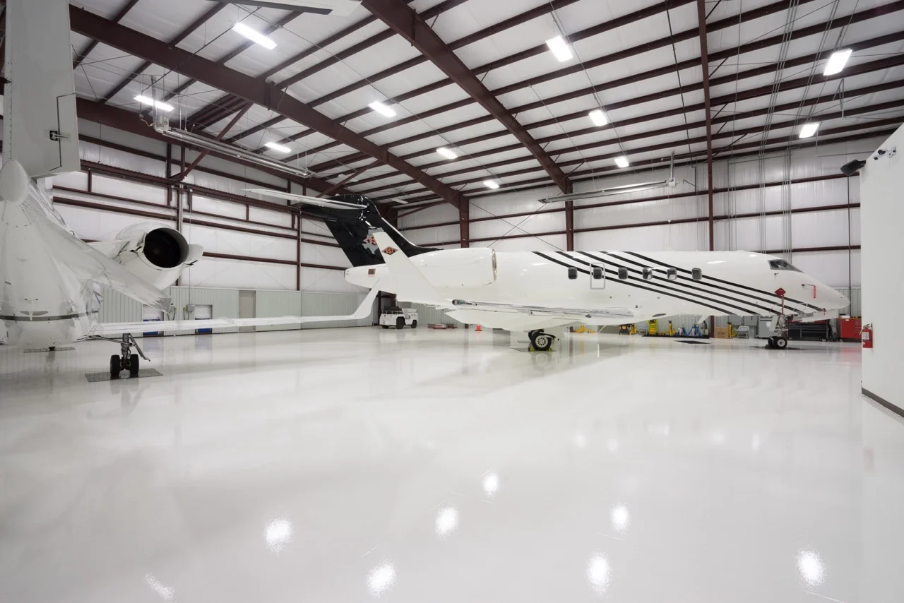 The finished product turned out great and we enjoyed working with the team at SSI. We love working on open spaces like airport hangars because you really get a great view of the flooring from all angles. Watch this awesome time lapse video to see our team in action: